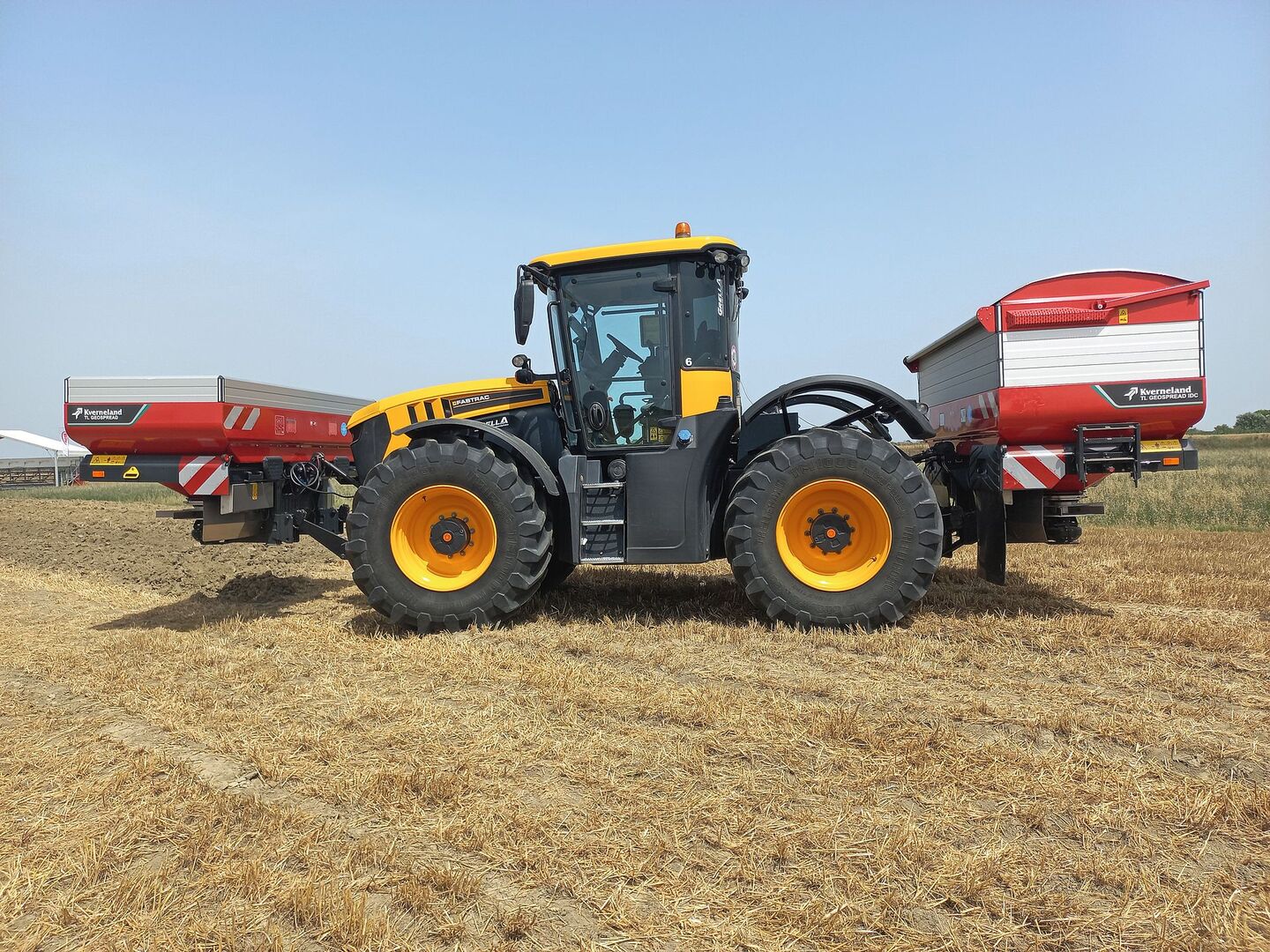 Mit dem Geospreader können in einem Arbeits-gang zwei verschiedene Dünger sehr präzis ausgebracht werden. Zielgenaue Ausbringung am Rand ist möglich, weil die Streuscheibe dank Applikationskarte gegen den Rand langsamer dreht.