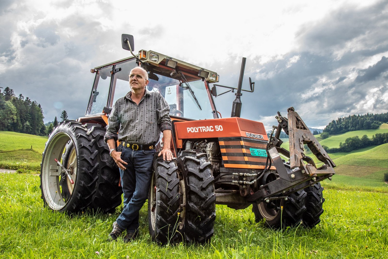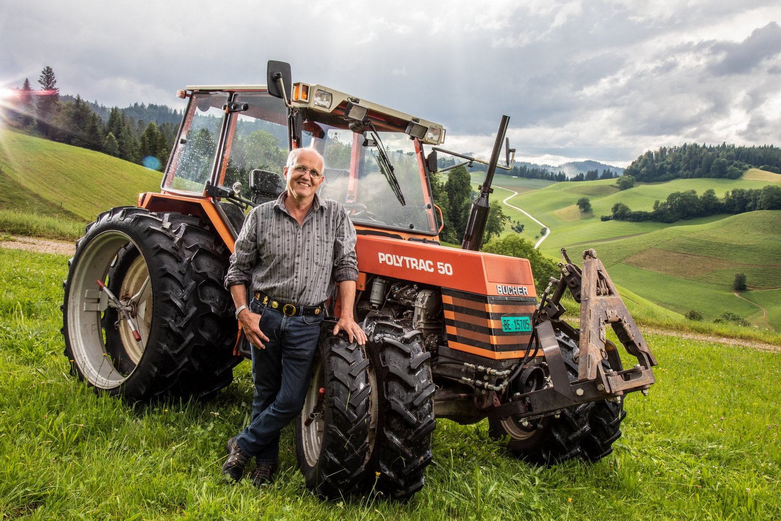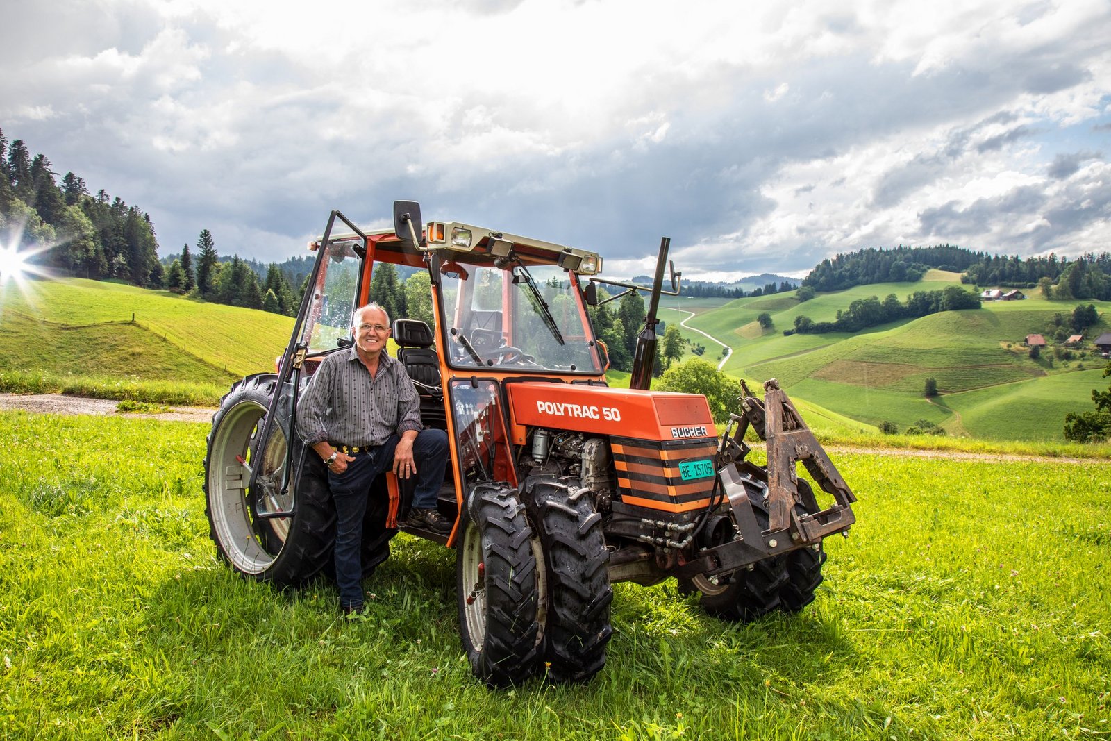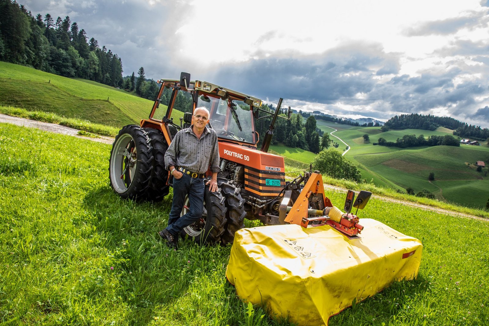 Kari Schmutz (61), Landwirt in Lützelflüh BE, mag seinen Bucher Polytrac 50: «Ich bin schon seit Kindesalter ein Fiat-Fan. Nach der Hofübernahme 1991 haben wir den Polytrac 50 neu angeschafft – und er ist bis heute unser einziger Traktor. Der Polytrac 50 ist ein Fiatagri 45-66 und wurde von Bucher/Guyer in Niederweningen ZH Ende der 1980-er Jahre mit Fronthydraulik, Steuergerät und Frontzapfwelle ausgestattet. Der Polytrac 50 ist wendig und extrem hangtauglich. Mit seiner optimalen Gewichtsverteilung setze ich ihn für alle Arbeiten auf unserem Betrieb ein – und überbetrieblich fürs Mähen.»