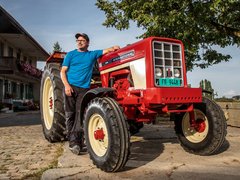 Elmar Hayoz (41) ist Landwirt in Jetschwil in Düdingen FR: «Mein Vater hat diesen International Harvester IH 574 im Jahr 1972 gekauft. Dieses englische Modell konnte man als ersten Traktor mit einem hydrostatischen Antrieb haben.»