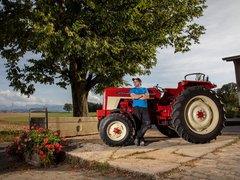 «2005 war die Hofübergabe, natürlich mit dem IH 574. Seither ist er als Zweit-Traktor im Einsatz. Zum 50. Geburtstag des Traktors haben wir ihn originalgetreu restauriert. Nun verrichten wir mit ihm die täglichen Kleinarbeiten auf unserem Betrieb.»