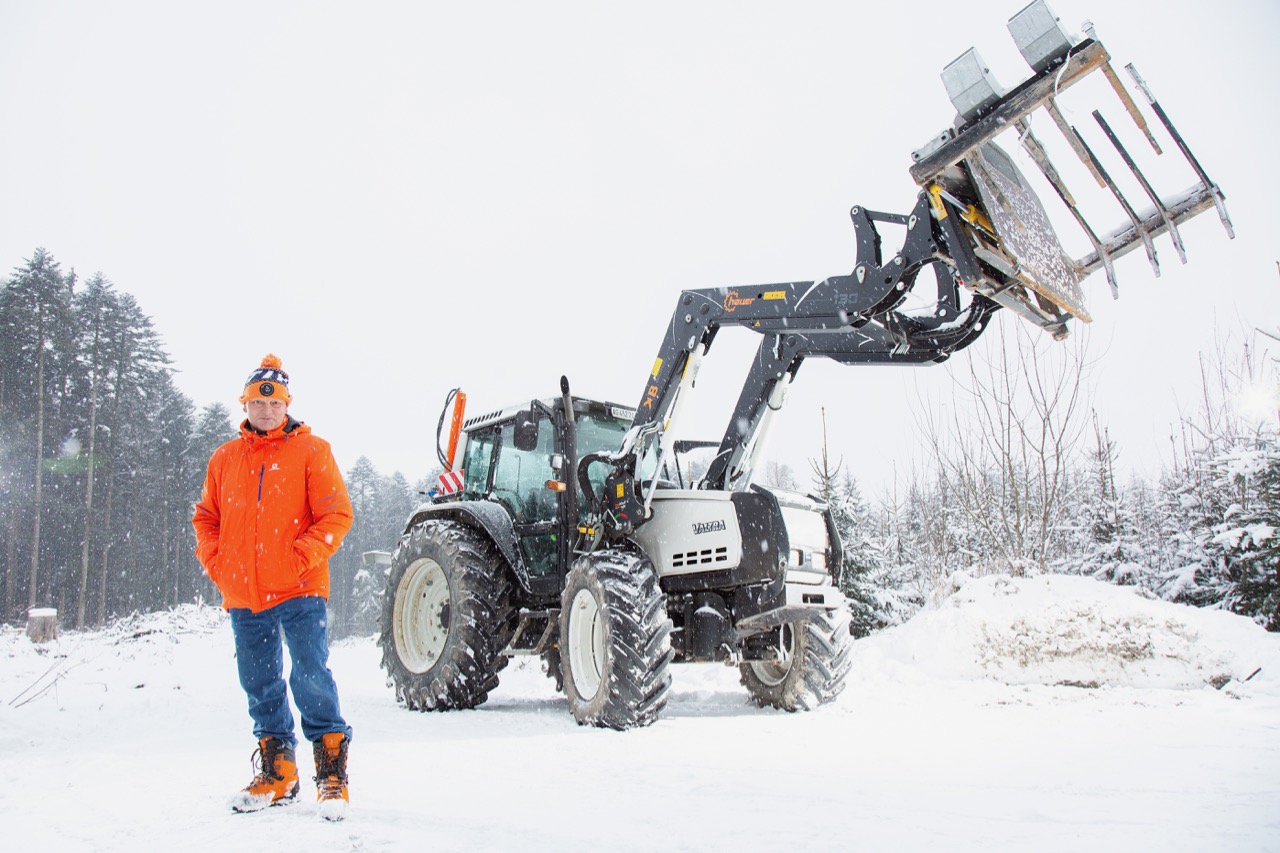 Läubli erzählt: «Ich habe 1991 während meines Austauschjahres in Minnesota USA einen Praktikantenkameraden aus Finnland kennengelernt. Er hat mir seine «Heimatmarke» Valtra, damals noch Valmet, vorgestellt. 1993 war ich als Mechaniker bei der ersten Firma tätig, welche die Marke Valmet in der Schweiz vertrieb. Den Valtra 6800 habe ich Ende 2009 angeschafft, als Trägergerät für Spezialforstmaschinen sowie als Zugmaschine für den Brennholztransport. Der Valtra 6800 ist technisch ausgereift und hat eine robuste Technik.»