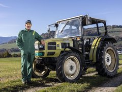 «Mein TraumTraktor ist sehr wendig, das schätze ich. Mit meinem Hürlimann komme ich überall durch. Ich brauche ihn auf unserem gemischten Betrieb für fast alle Arbeiten. Mein TraumTraktor ist auch im Wald im Einsatz. Besonders praktisch ist der tiefe Einstieg in die Kabine.