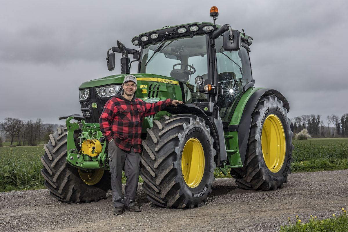 Der 6115 R ist wendig, handlich und für uns eine grosse Entlastung. Ich setze ihn am häufigsten beim Mähen ein, aber auch mal mit einer Säkombination oder für einen Transport. Ich habe ihn seit 2017, als ich einen John Deere 6320 eintauschte – mit meinem TraumTraktor bin ich absolut zufrieden.»