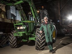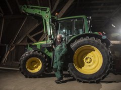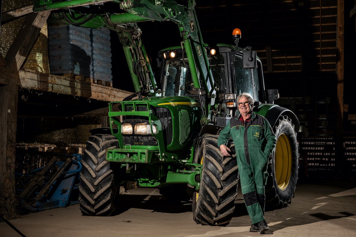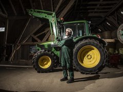 «Auf unserem Betrieb mit Mutterkühen und Ackerbau wird der John Deere 6320 vielseitig auf dem Hof und Feld eingesetzt. Für mich ist er mein TraumTraktor, weil er für das Baujahr 2005 bereits viel Komfort bietet. Von der gefederten Vorderachse (und der damals bereits erhältlichen gefederten Kabine) über die Lastschaltstufen bis zur reduzierten Drehzahl bei Höchstgeschwindigkeit.