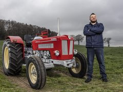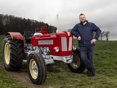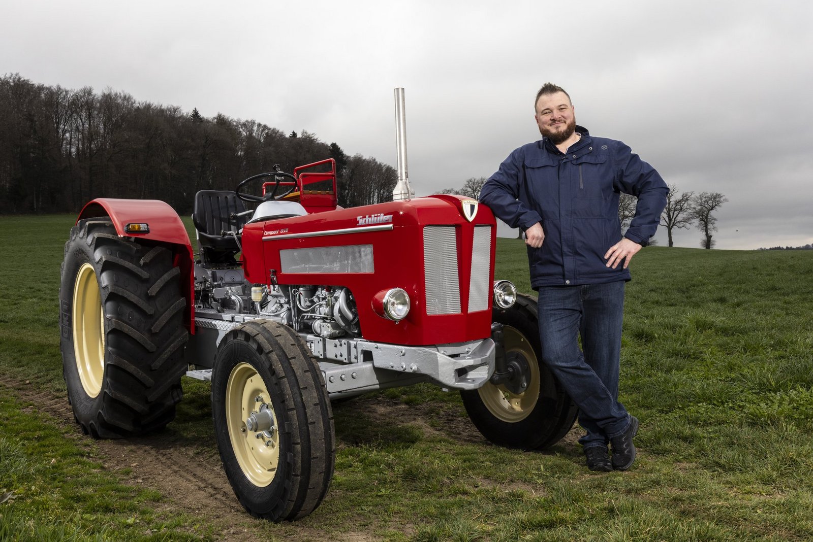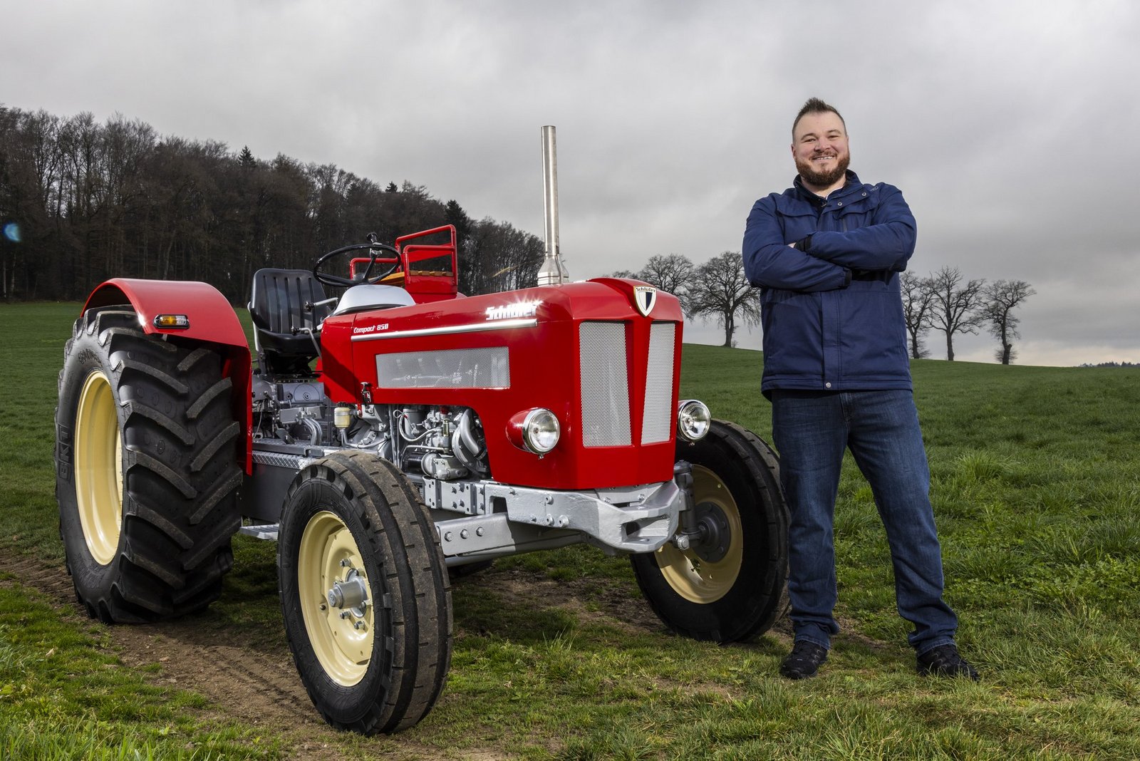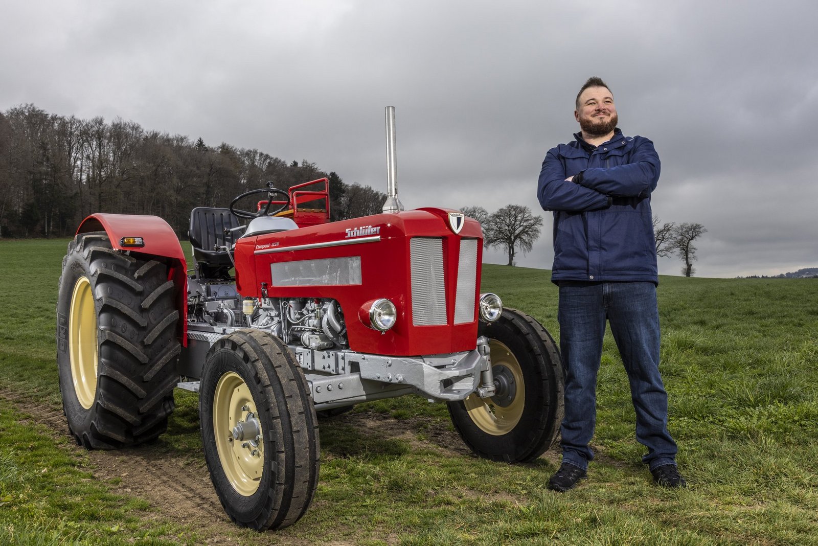 «Meinen TraumTraktor, den Schlüter Compact 850, habe ich per Zufall im Jura in einer Scheune entdeckt. Es brauchte ein paar Jahre Geduld, bis der Besitzer bereit war, ihn zu verkaufen. Seit April 2022 ist der Schlüter in meinem Besitz und bis zu seinem MFK- Prüftermin am 30. August 2023 habe ich unzählige Stunden für die Restauration an ihm gearbeitet. Der Schlüter wird ab und zu auf dem elterlichen Hof in Posieux oder bei Kollegen für Arbeiten eingespannt. Durch die Sommersaison bin ich an verschiedenen Traktortreffen mit ihm am Start. Die Marke Schlüter ist ein Virus: Hat man es einmal, wird man dieses nicht mehr los.»