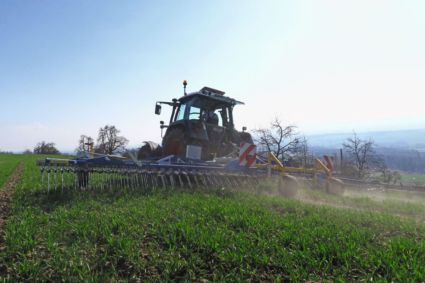 Der erste Striegel-Einsatz im Weizen ist angezeigt, sobald der Boden im Frühjahr abgetrocknet ist und die Kultur das 3-Blatt Stadium erreicht hat. In diesem Stadium muss langsam (ca. 4 km/h) und vorsichtig gestriegelt werden, um den Weizen nicht übermässig zu schädigen.