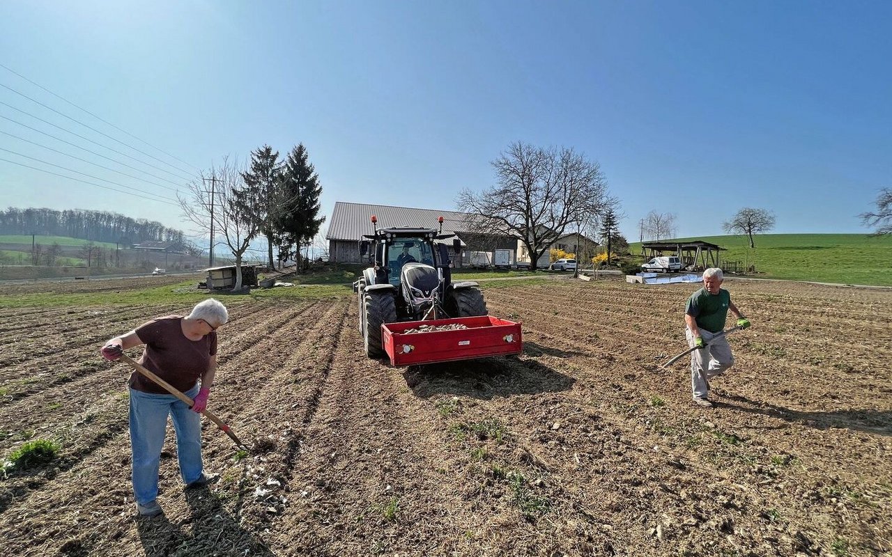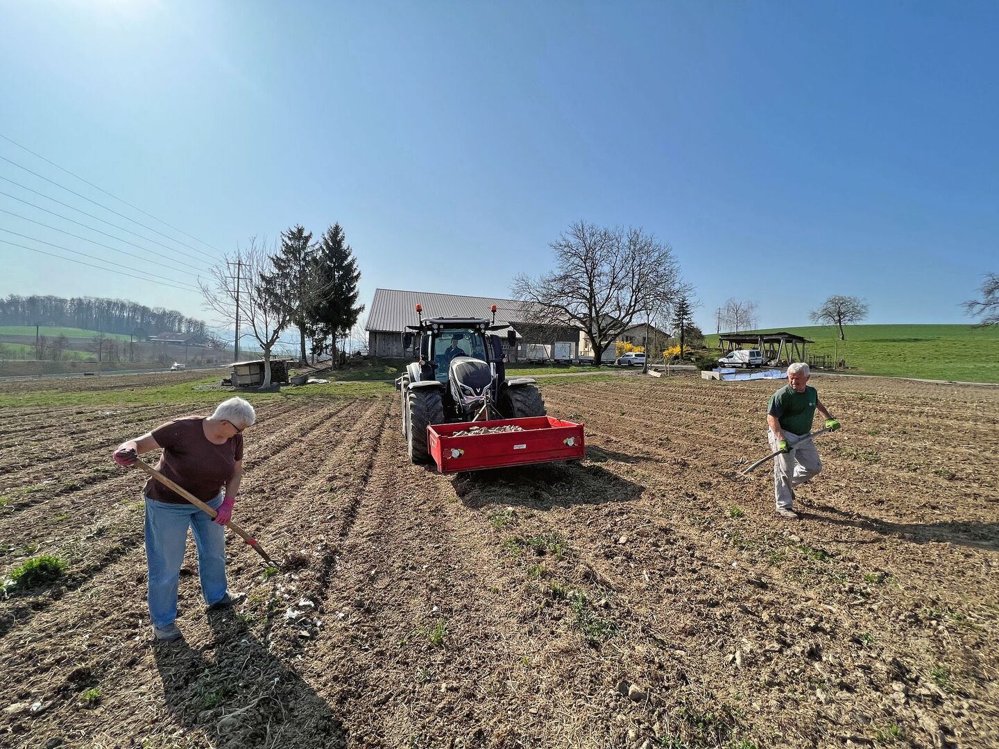 Maya und Jean-Jacques Duperrex haben am 29. März auf der Spargelfläche Steine aufgelesen.
