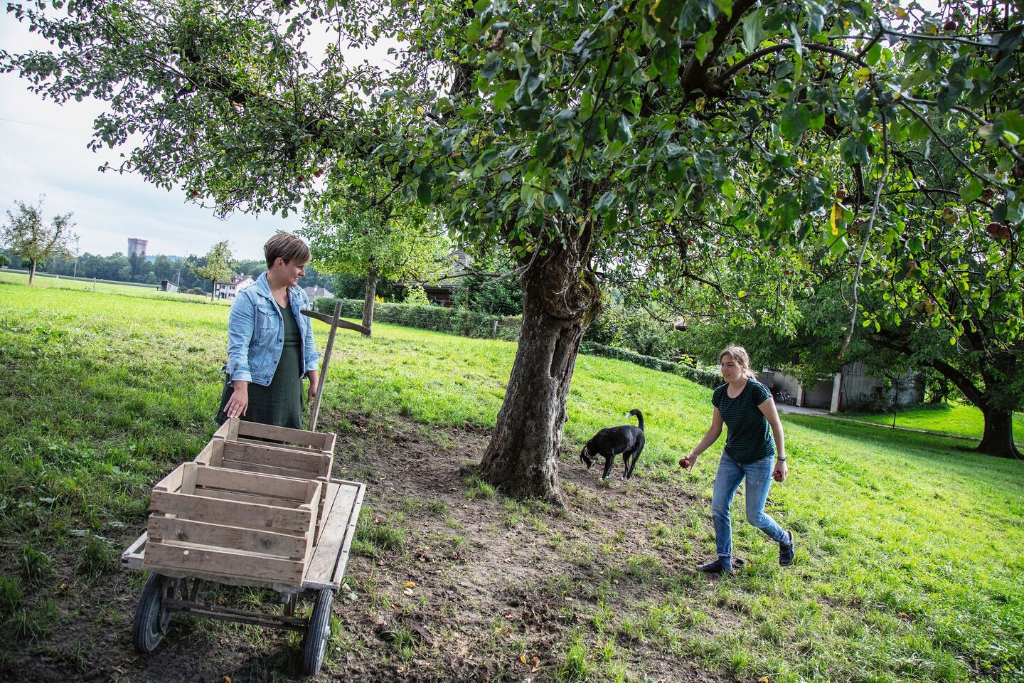 In etwas ruhigeren Wochen treffen sich alle am Freitag zu einem Feierabendbier und sitzen draussen. «Alle» beinhaltet neben der Familie, der Angestellten, dem Lernenden und den Agriviva-Jugendlichen auch die Schwiegereltern und weitere Angehörige, die in der Nähe leben, wie Vanessas Eltern.