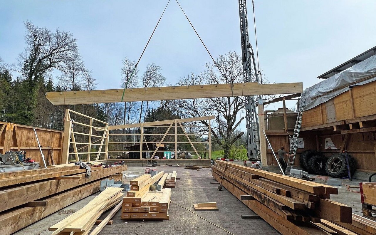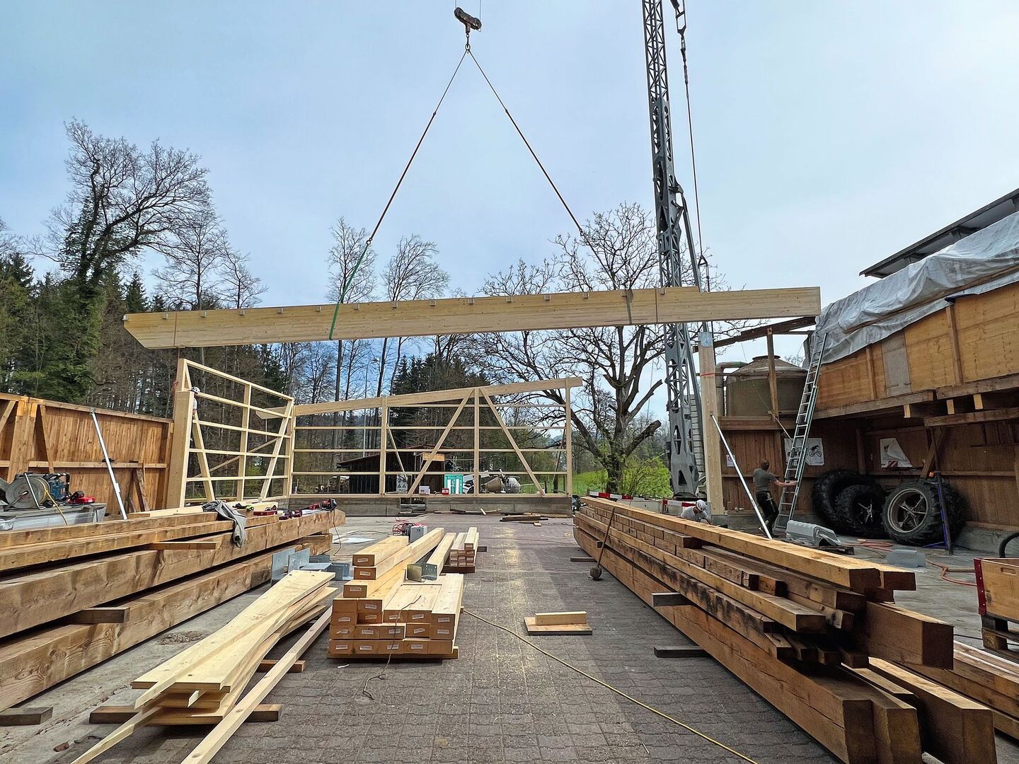 Am 11. April wurde auf der Stöckweid die Scheune aufgerichtet.