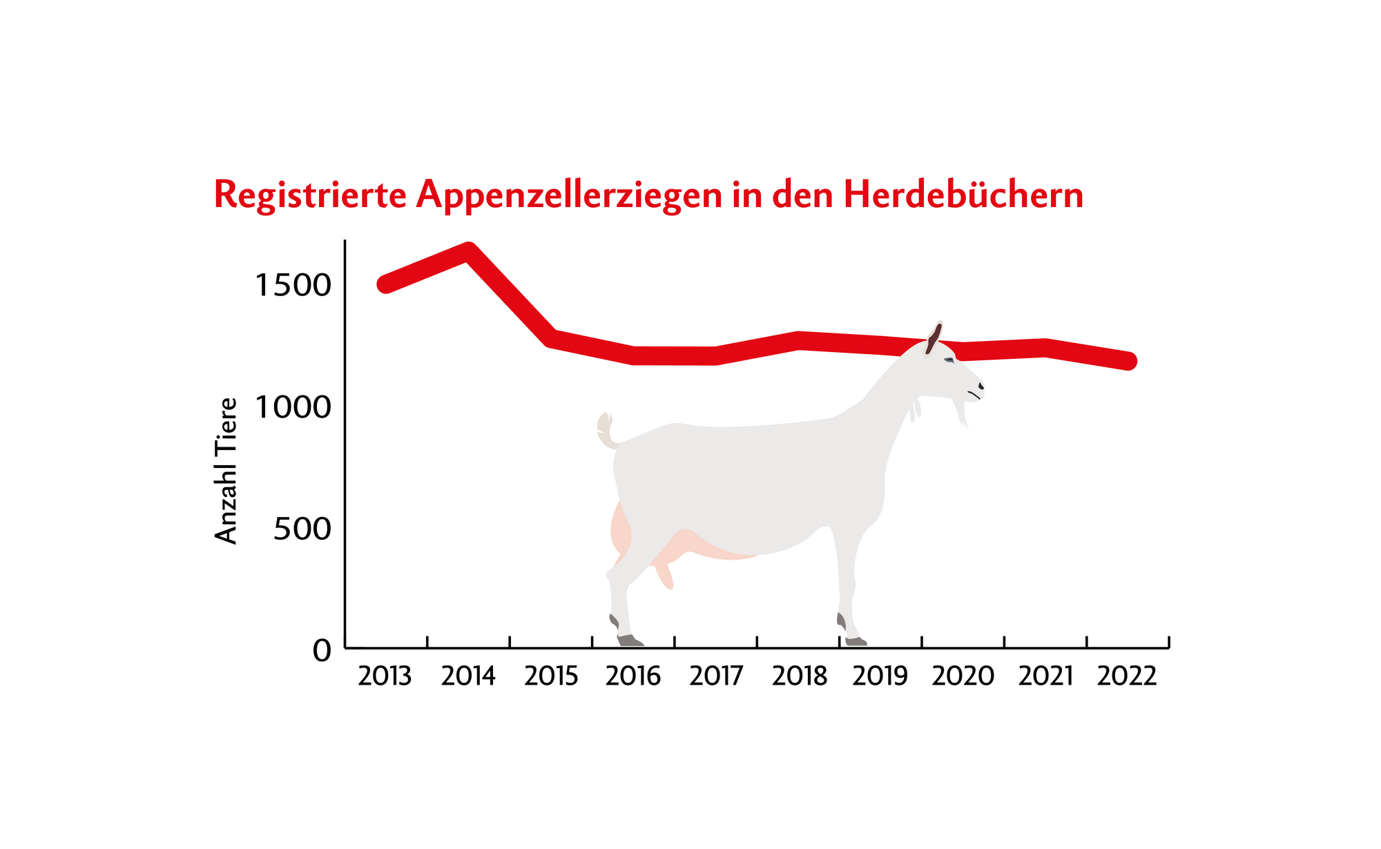 Seit den 1970er-Jahren wuchs der Bestand der Appenzellerziegen auf über 1000 Tiere.