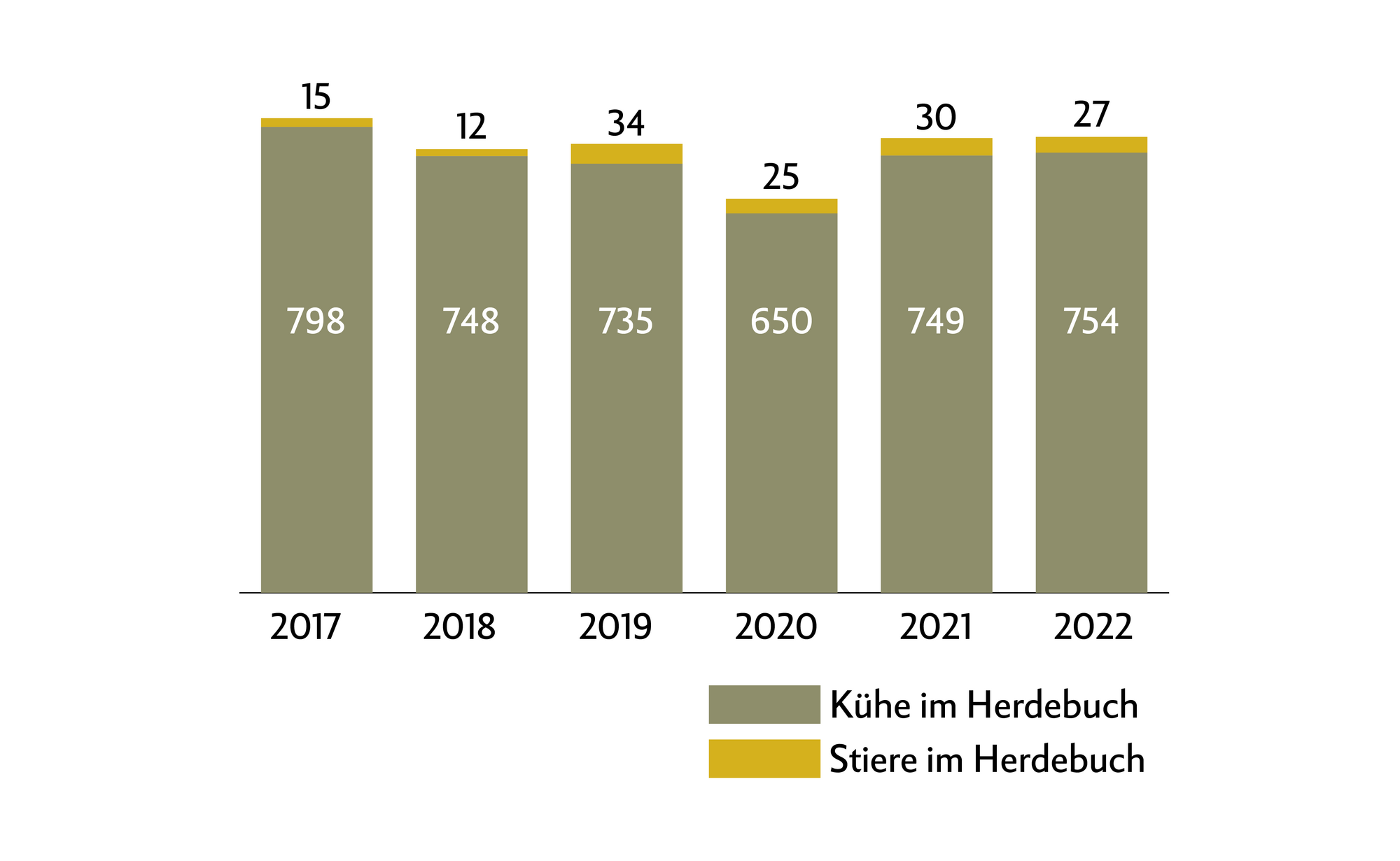 Seit 2017 führt der Zuchtverband Braunvieh Schweiz das Herdebuch des Rätischen Grauviehs. Diese Herdebuchzahlen können nicht direkt mit den vorherigen Erhebungen durch den RGS verglichen werden, weshalb hier nur die Entwicklung seit der Umstellung dargestellt ist .