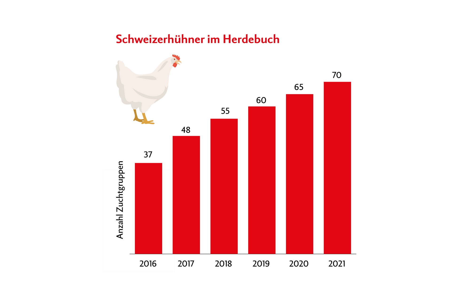 Was bekannt ist: In den 1990er-Jahren gab es kaum mehr 50 Tiere. Heute ist die Zahl auf rund 3000 Schweizerhühner gestiegen – Hennen und Hähne.