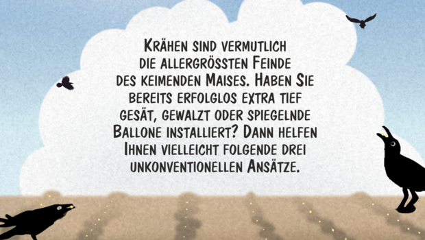 Krähen sind vermutlich die grössten Feinde des keimenden Maises. Haben Sie es bereits erfolglos extratief gesät, gewalzt oder spiegelnde Ballone installiert? Marco Ratschiller/Karma zeigt drei unkonventionelle Ansätze auf.