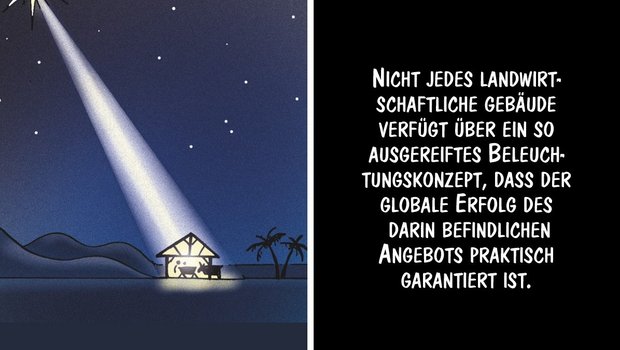 Nicht jeder landwirtschaftliche Betrieb hat ein ausgeklügeltes Beleuchtungssystem. Marco Ratschiller/Karma gibt Tipps und zeigt, wovon er eher abrät.