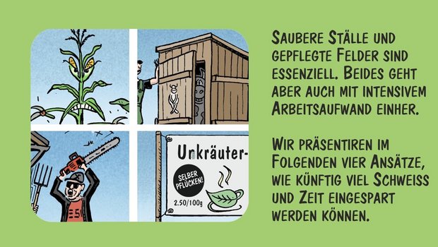 Cartoon von Marco Ratschiller/Karma: Innovationen für die Bodenbearbeitung