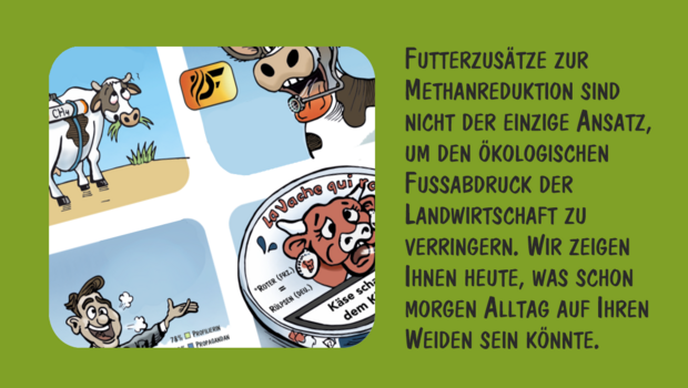 Futterzusätzen zu Methanreduzierung sind nicht der einzige Ansatz, um den ökologischen Fussabdruck der Landwirte zu verringern. Marco Ratschiller/Karma macht Vorschläge, was schon morgen Alltag auf den Weiden sein könnte.