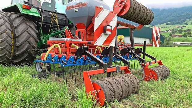 Aufgrund der Nässe haben vielerorts die Wiesen- und Weidebestände stark gelitten. Fahrspuren und Trittschäden sind keine Seltenheit. Daher kann es sich lohnen, die Grasbestände mittels einer Übersaat zu sanieren, um den Ertrag fürs Folgejahr zu sichern.